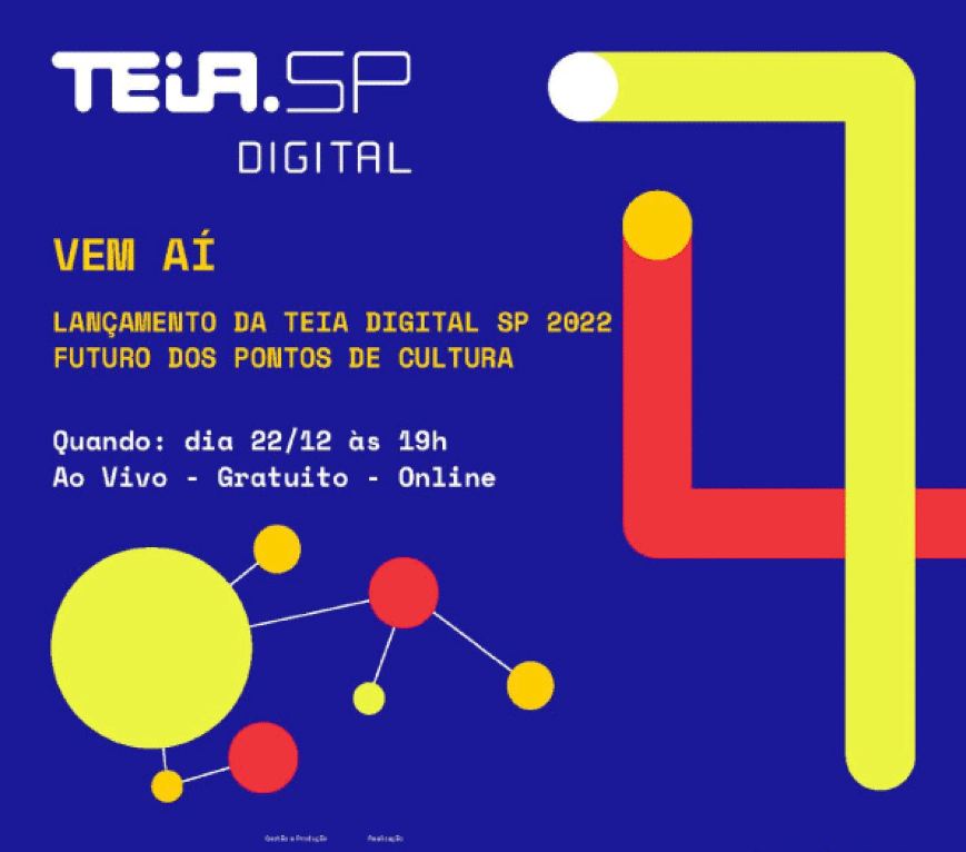 O que é a TEIA SP Digital? É um ambiente digital inspirado nas TEIAS presenciais nacionais e estaduais e tem como objetivo colaborativo promover um conjunto de indicadores socioculturais da Política Nacional Cultura Viva no Estado de São Paulo.
