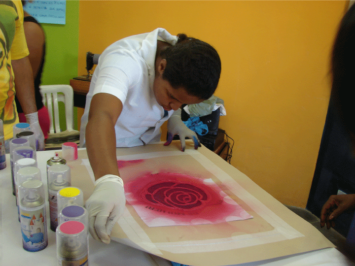 O projeto propiciou condições de como criar um stencil personalizado e fazer estampas exclusivas