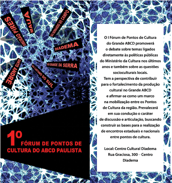 Realizou Semiários, Intervenções Culturais e Debates sobre o Fórum de Pontos de Cultura das Sete Cidades do ABCD Paulista